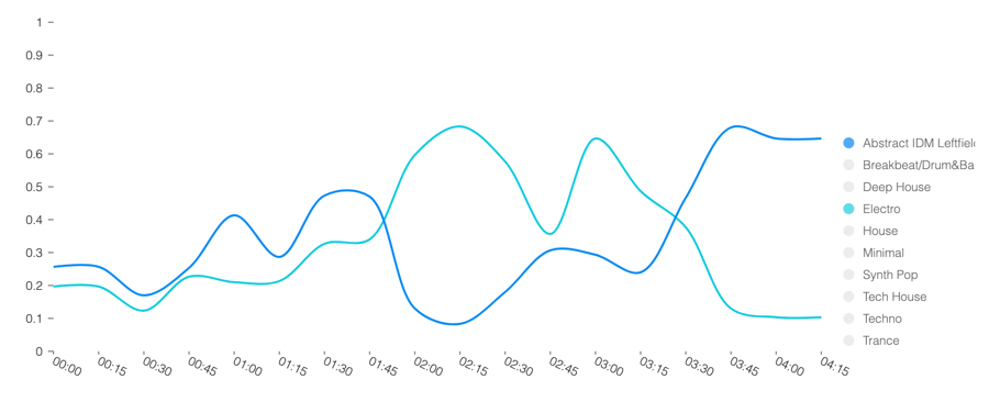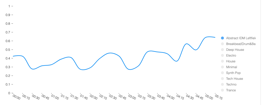 Got that? Combining the results from the other tracks, the AI algorithms most strongly tags my music as “abstract IDM leftfield” with a smattering of jazz fusion/jazztronica. In other words, it’s predicting that a very small number of people will ever listen to my music, given the relative size of “abstract IDM leftfield” fandom is. Obviously, I won’t be earning a noticeable income from streaming platforms.